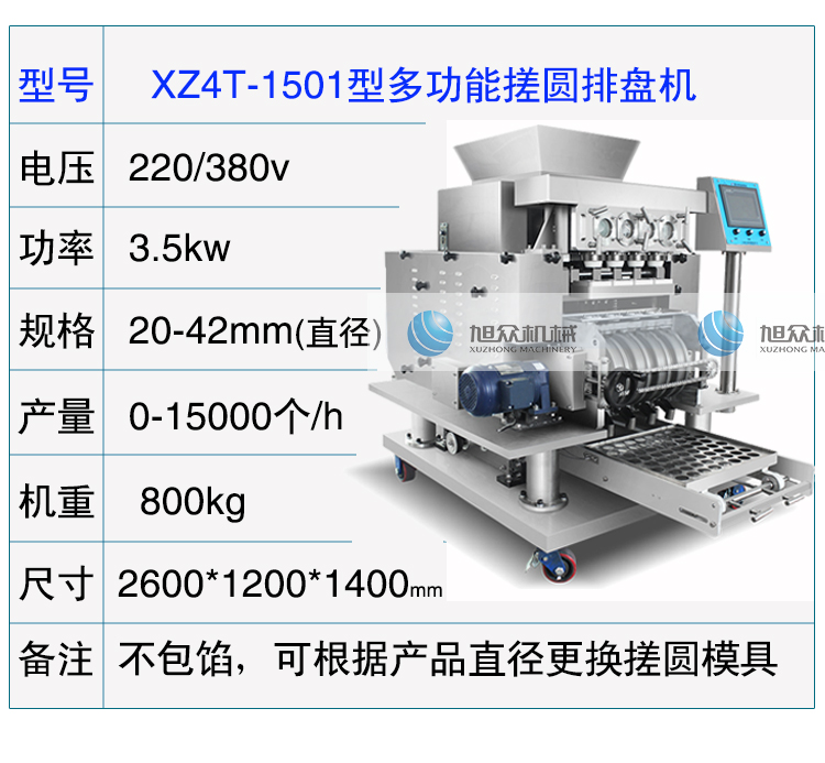 XZ4T-1501型多功能搓圓排盤機,